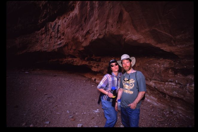 Here's Freeman and Manny in Grand Gulch at Capital Reef National Park